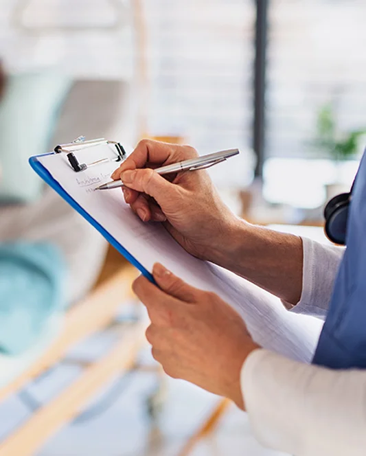 A clinical guidance assessment of the wound-care routine, environment, challenges, and supply needs. Includes a personalized daily-care support plan.